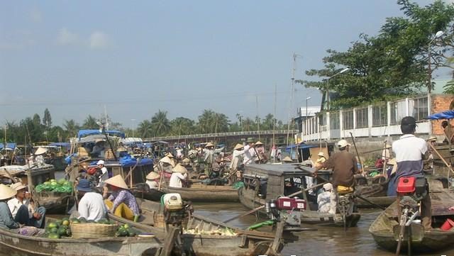 Saigon River Tours tour guide and driver will pick you up at your hotel in Ho Chi Minh City for Mekong Delta Tours excursion (recommend depart at 6 am). Leave busy Ho Chi Minh City for The Cai Be floating market by car/van, photos capture en-route, overlooking panoramic view rice fields. On arrival in Cai Be Floating Market, you will take a motorized boat visiting amazing The Cai Be floating market, experience the local business happening among boats of buyers and sellers. Then wander into the village path to visit the orchard and fruit plantation.